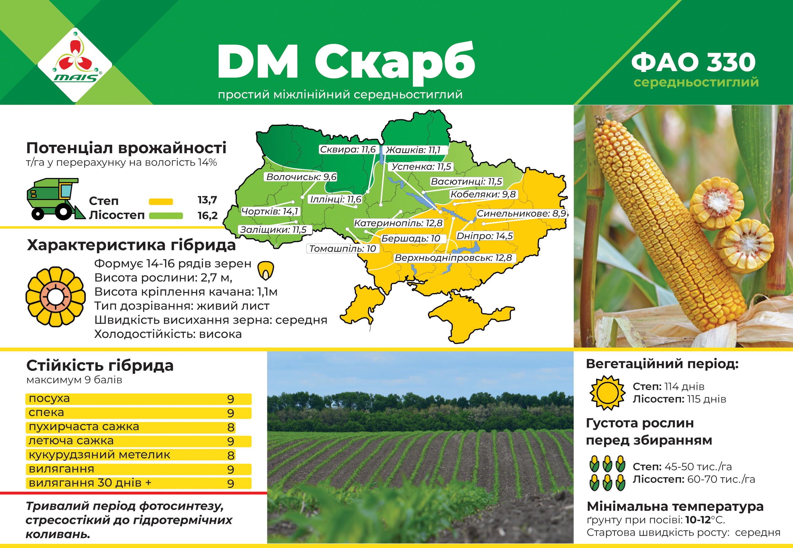 ДМ Скарб (ФАО 330) Середньостиглий гібрид кукурудзи