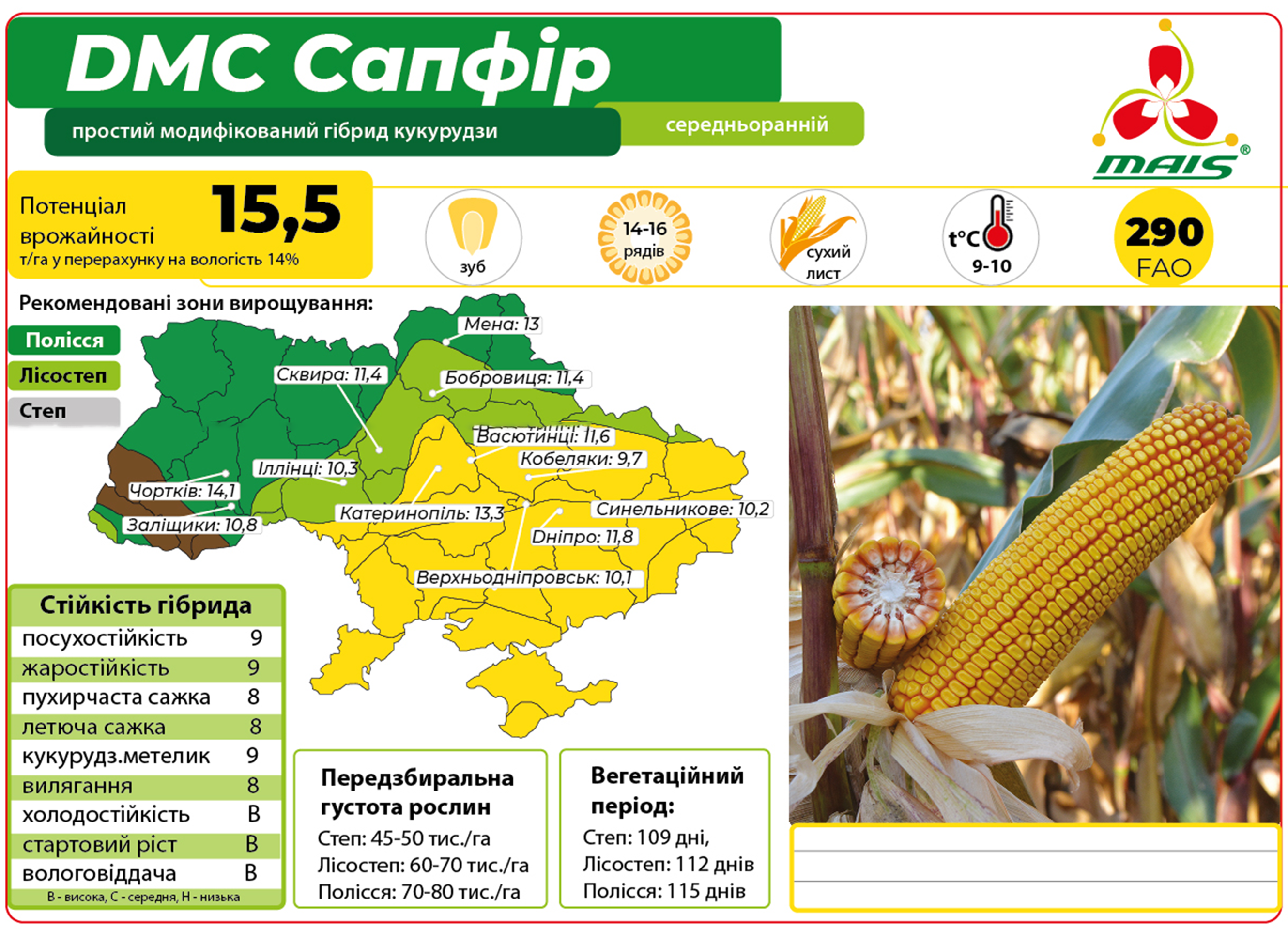 Високий рівень адаптивності робить його відмінним вибором для більшості агрокліматичних зон України: Полісся, Лісостеп та Степ.